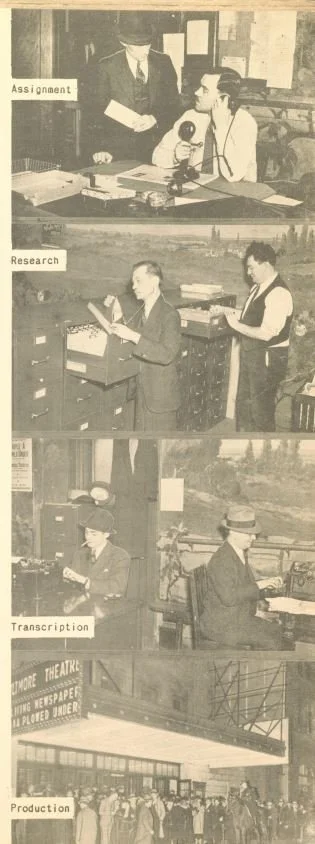 Pictured: “Editing the Living Newspaper.” Federal Theatre Vol. 1 No. 5. April 1936. Pg 16-17.